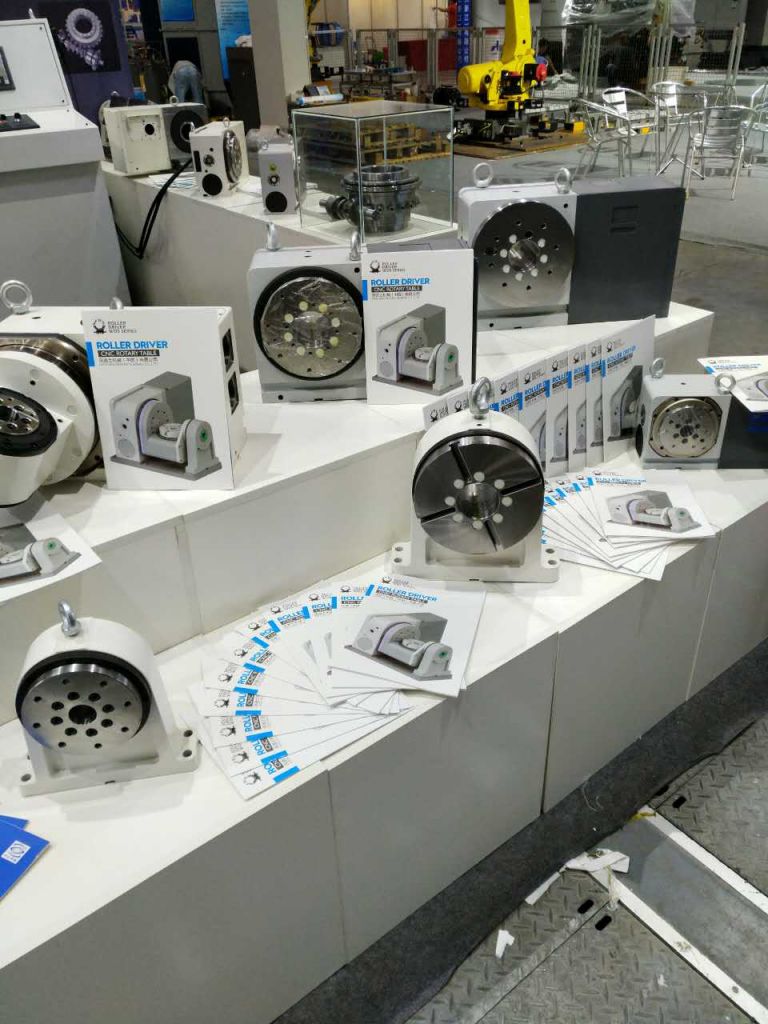 沃迪士精密機械有限公司經(jīng)過精心準(zhǔn)備,攜手中山市中軸軸承有限公司在本次展覽會上展出了沃迪士的凸輪機構(gòu)產(chǎn)品,CNC第四軸,單臂式五軸,搖籃式五軸等精密數(shù)控轉(zhuǎn)臺全部亮相,并成為該展會中一大亮點。高剛性,高速度,正反轉(zhuǎn)零背隙的RollerDriver技術(shù),吸引了眾多客商的駐足觀看與咨詢洽談。不少求購商帶來了加工現(xiàn)場遇到的技術(shù)難題,但經(jīng)過沃迪士高素質(zhì)工程師的技術(shù)指導(dǎo)與工藝優(yōu)化,當(dāng)場解決了問題,讓眾多客戶大為滿意,現(xiàn)場達(dá)成購貨意向。